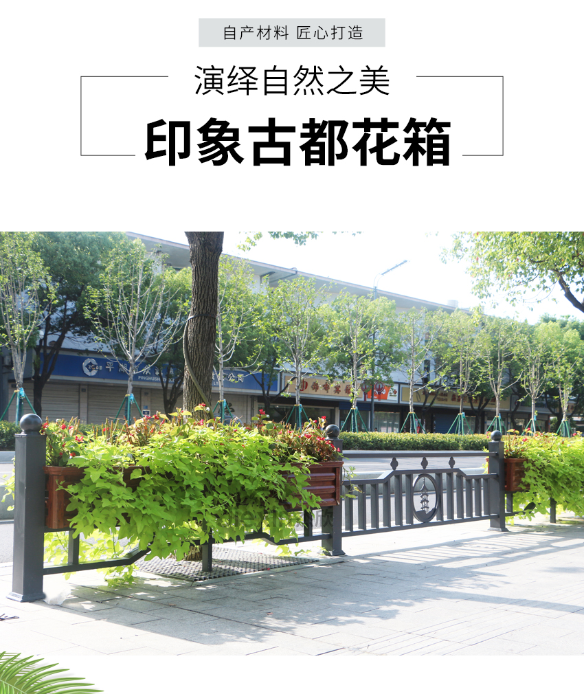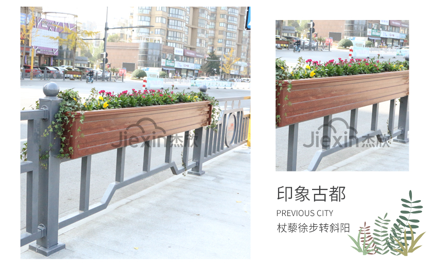 花箱護(hù)欄不僅可使用在道路上,也可以用于人行道,保障行人安全。