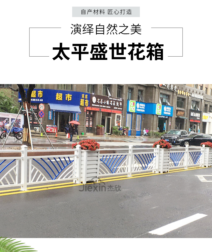 白色花箱護(hù)欄具有提亮街景效果,而且美觀大氣。
