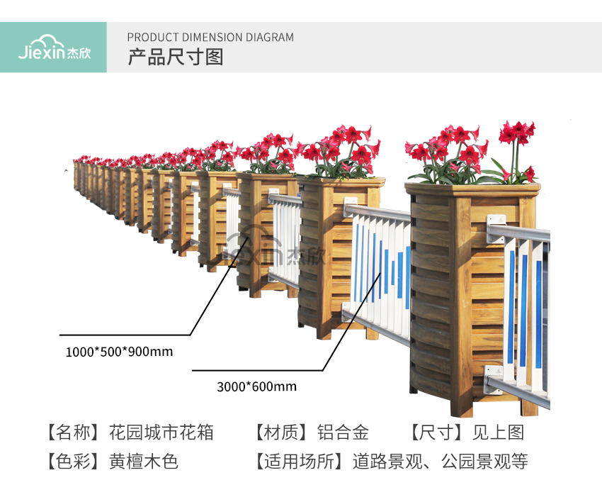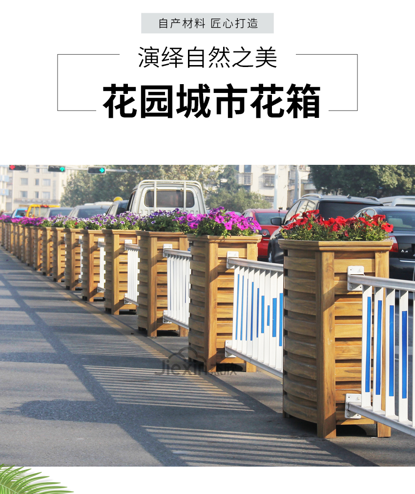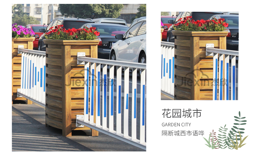 黃檀木色花箱護欄,能夠適用城市街道的景觀。
