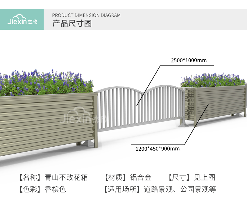 香檳色花箱護欄在道路場景中并不多見,香檳色以其低調(diào)沉穩(wěn)的氣質(zhì),烘托出城市的生態(tài)、歷史感。