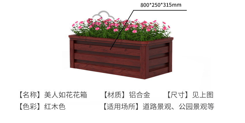 鋁合金懸掛花箱的運(yùn)用,加強(qiáng)了耐用的屬性,兼具美觀堅(jiān)固的特色。