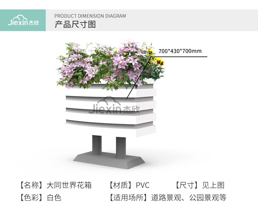 造型簡約的PVC花箱,在道路上也是一道優(yōu)美的風景線