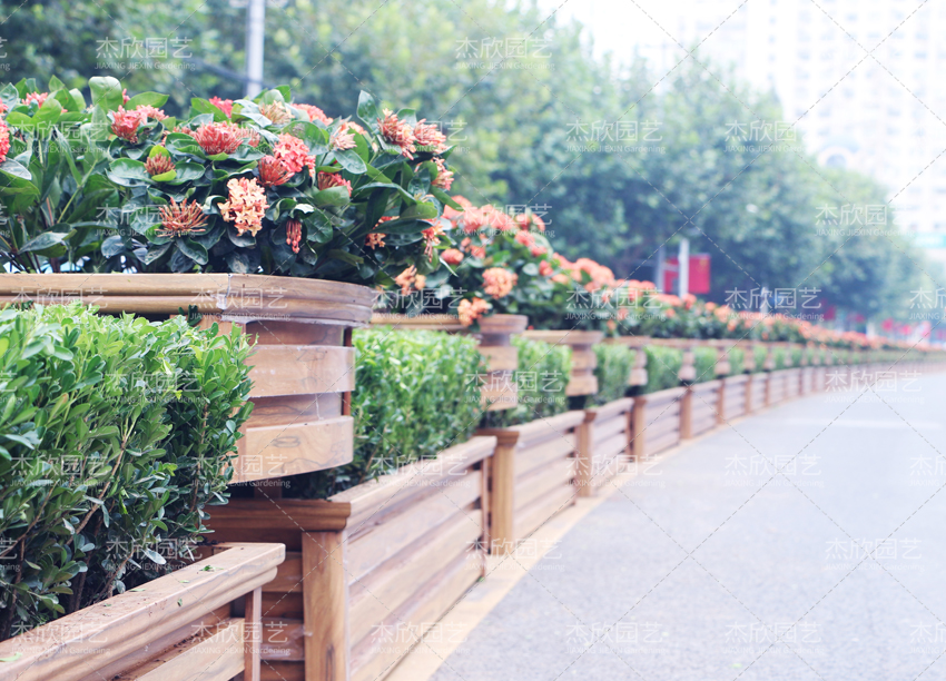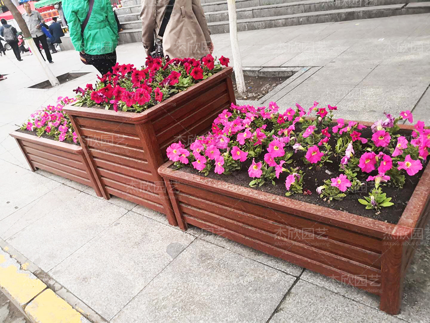城市街道上的花箱隔斷,一般選取組合花箱或單個(gè)花箱形式。