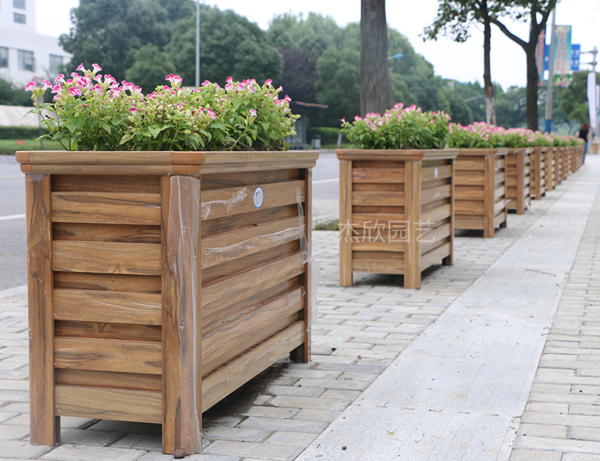 防腐木花箱是早年比較流行的花箱,這幾年使用的很少了,防腐木花箱表面不耐磨,也易受腐蝕,更加適合室內(nèi)場景使用,戶外環(huán)境更適合PVC花箱、鋁合金花箱。
