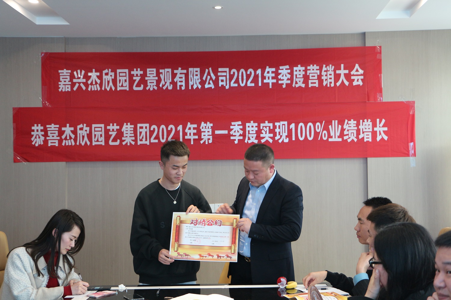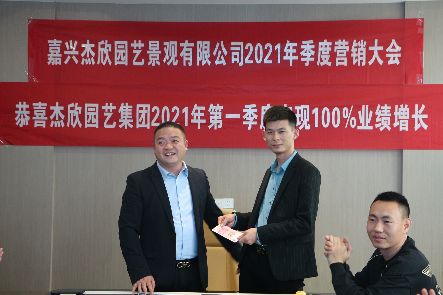 杰欣集團(tuán)第一季度的成果離不開每一個人的傾力付出。月度獎勵由總經(jīng)理洪強(qiáng)頒發(fā),獎勵每月銷售冠軍,再接再厲,取得更輝煌業(yè)績。
