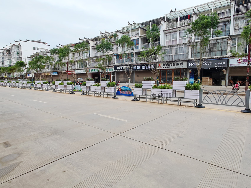 pvc品字形組合花箱護欄非常適合城市道路中央隔離帶、機非隔離帶。