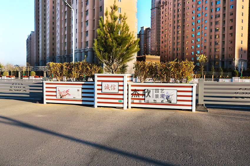 道路組合花箱外觀設(shè)計采用uv打印技術(shù),實現(xiàn)景觀定制需求,表現(xiàn)城市文化脈絡(luò)。