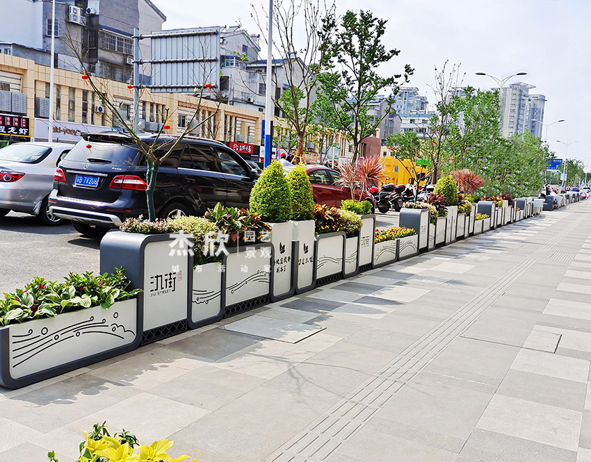 氿街街區(qū)景觀以花箱和座椅構(gòu)成,能夠在場景中完成美化提升工作。山水元素作為此次方案的基地,用文化喚醒人們對宜興歷史的記憶。