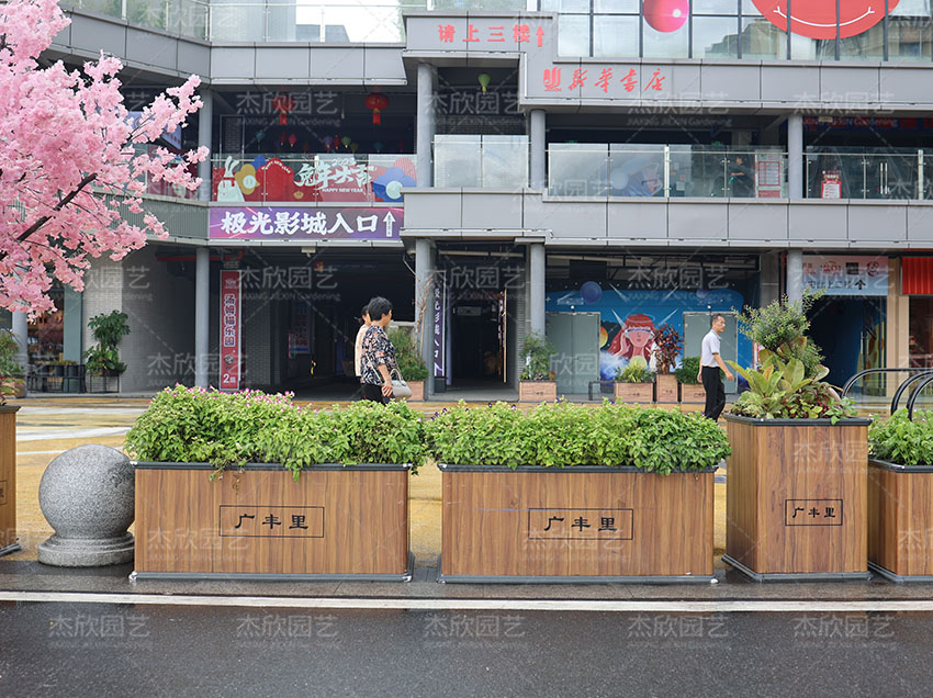鋁合金花箱是型材花箱,加工速度快,適合工期短的項目,木紋效果顯著,綠化美化的效果。