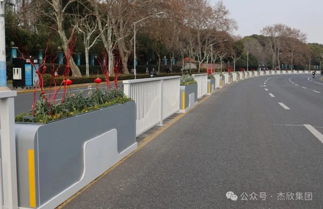 花箱與護(hù)欄組成了一組樂(lè)曲,在城市風(fēng)景里演奏,仿佛音符流傳出來(lái)。虹橋路隔離花箱不僅改善了城市景觀風(fēng)景,而且提升了花園城市水平。