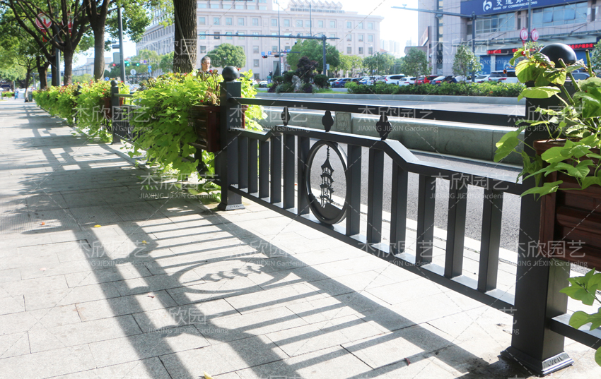 這是一款用在人非隔離帶的花箱護(hù)欄