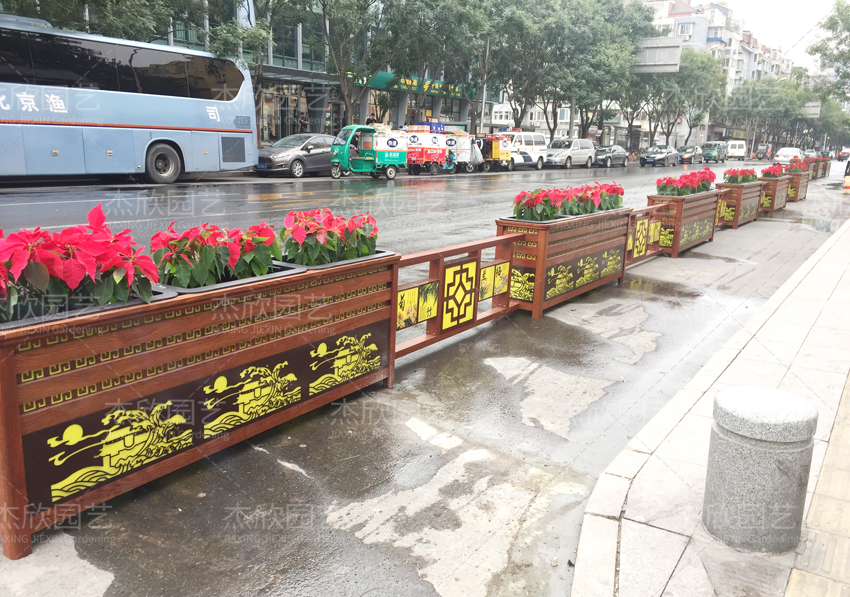 這款智慧花箱,外型設(shè)計(jì)由花箱、護(hù)欄組合,選配紅木色,增添古典氣息,發(fā)光圖案取自“春江花月夜”,韻味盎然,打造古典美。