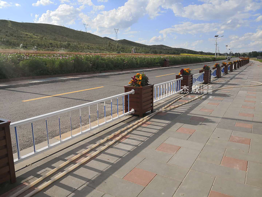 常規(guī)的花箱護欄也能帶來意想不到的效果。花箱護欄的選擇上,盡可以貼近場景的特點,與城市背景融為一體。