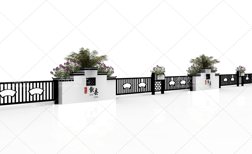 新中式仿徽欄桿不銹鋼花箱鐵藝花箱鋁板花箱