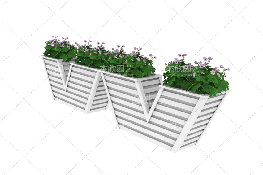 W型花箱,和常規(guī)花箱相比,新穎別致、富有造型。看多了常規(guī)花箱,不妨一試。雖說新穎,但也與道路很合適。白色外觀清新自然,W型和諧耐看