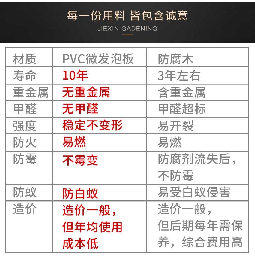 pvc花箱,生產(chǎn)使用PVC微發(fā)泡結(jié)皮覆膜板。,優(yōu)點不吸色、易清洗、不腐爛,它單位立方的承載力是木材的55倍。為你省去了維護(hù)成本。