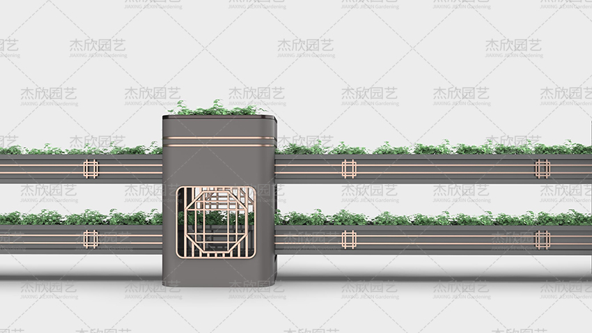 園林是中國(guó)建筑美的杰出代表,也是中國(guó)人對(duì)人居環(huán)境的詩(shī)意闡述。園林寄托著人們對(duì)美好生活的向往。園林藝術(shù)在當(dāng)代設(shè)計(jì)中也屢見(jiàn)不鮮,并深受喜愛(ài)。這組道路花箱將園林之中的窗格藝術(shù)之美融入其中,取其神,去其形,用現(xiàn)代手法表現(xiàn)出祥瑞之意。