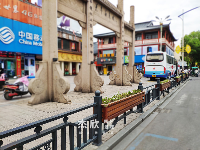 花箱護欄不僅起隔離綠化作用,更與步行街融為一體,增添美感。