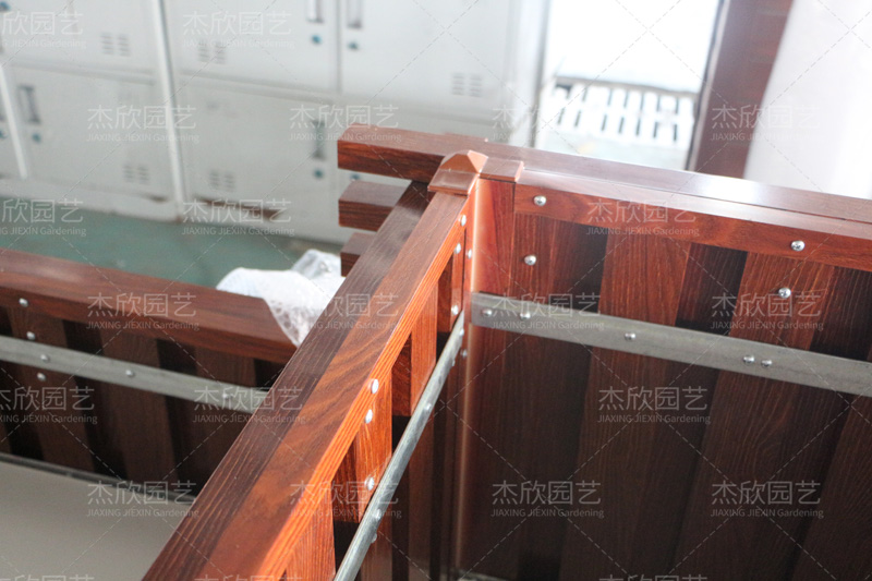 花箱內(nèi)部細節(jié)展示:側(cè)板用榫卯結(jié)構(gòu)固定,不銹鋼螺絲加固