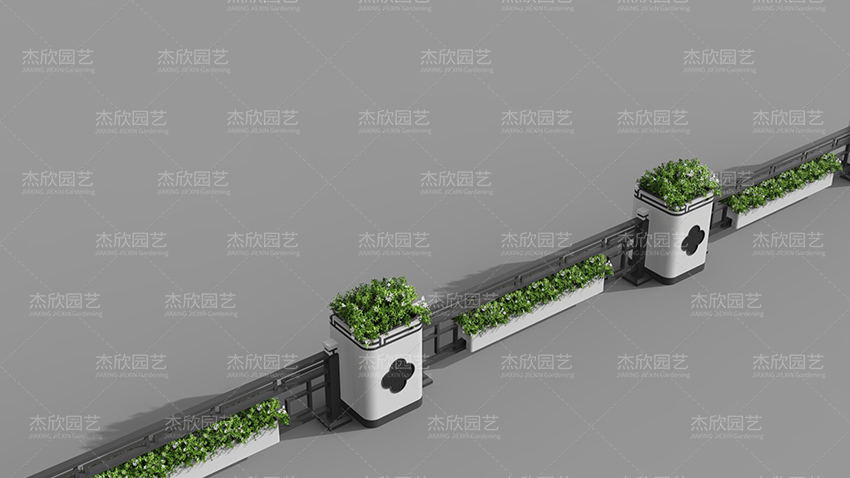 現(xiàn)代窗紋花箱,加入了窗紋元素,使得花箱更加活潑。這款花箱將現(xiàn)代和傳統(tǒng)融合,在用色上,以現(xiàn)代風(fēng)的黑白灰為主,在造型上強(qiáng)調(diào)簡(jiǎn)約。同時(shí)又加入了傳統(tǒng)元素,在護(hù)欄上增添造型,在花箱加入花卉窗紋,富有古典氣息。