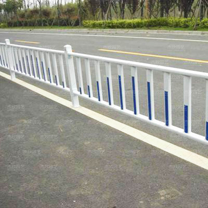 道路護欄材質(zhì)主要是鋅鋼,顏色以白藍為主,樣式不太多,以豎格為主。