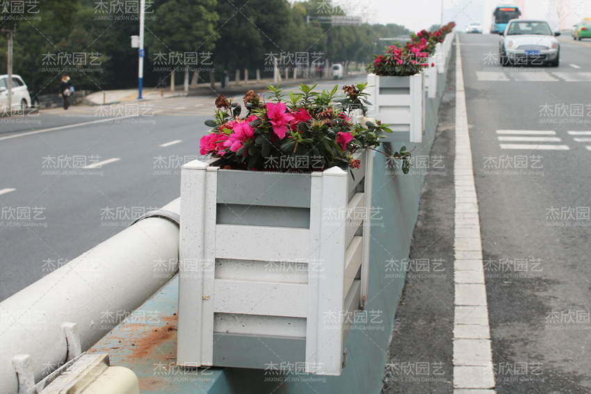 1、懸掛式花箱。懸掛式花箱安裝便利,只需要安裝在橋梁的護(hù)欄上即可。懸掛式花箱規(guī)格較小,花箱與花箱間距合理,能夠呈現(xiàn)出相當(dāng)不錯(cuò)的橋梁景觀。花箱顏色選擇以白色居多。